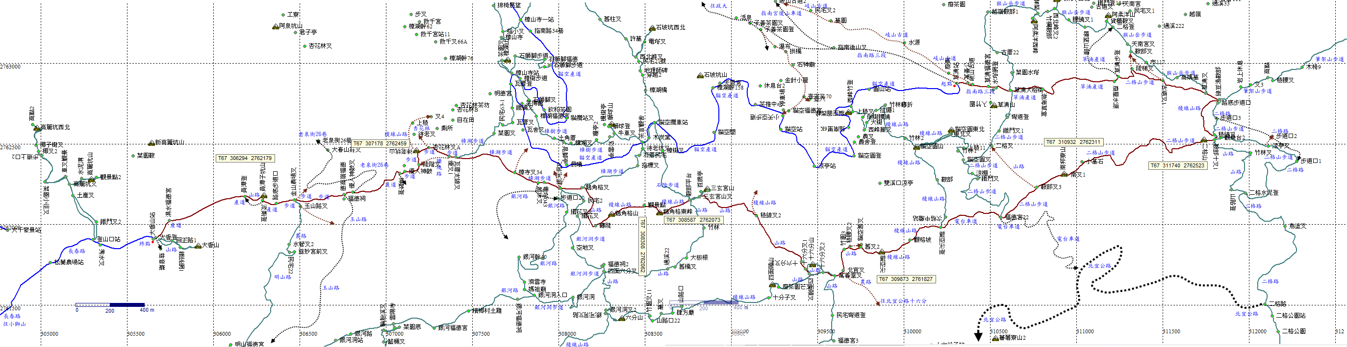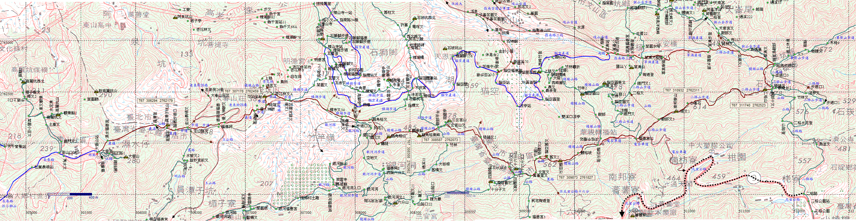 三玄宮山叉路,右緩上保線路往三玄宮山,省略。H445m |
