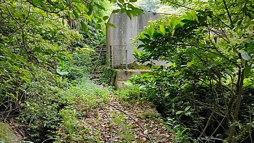 民宅游泳池水塔,沿著民宅圍牆外行走。最後一段轉折上產道。H383m |