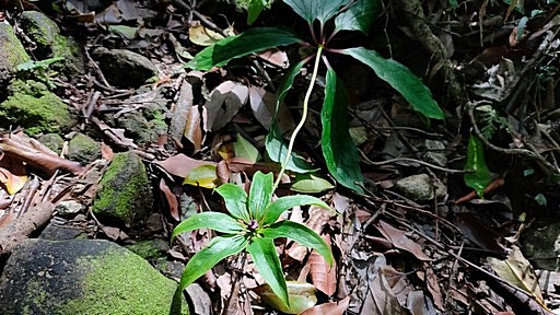 梅花山登山口,位於五指山公路旁,續行山路往梅花山,分岔為兩條路線,約三分鐘後會合。H615m |