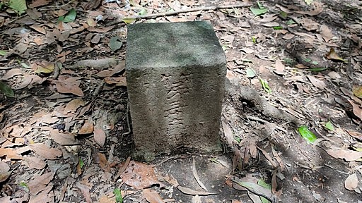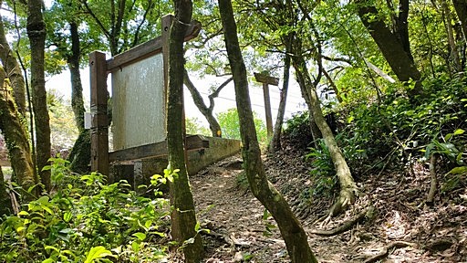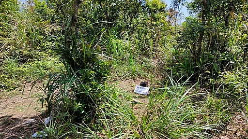 陽明山農場界柱,傾斜於山路右側。H471m |