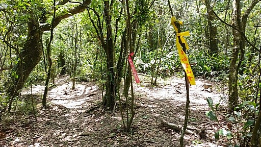 聖人崙(聖人瀑布頂),293m,礦務課第三十一號。樹林間無展望。休息時回頭上階梯小山頭看看,略可俯瞰聖人橋附近,近懸崖觀景要小心。H296m |