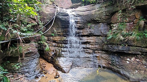 萬中瀑布,支流小溪水量不多。休息觀景。H32m |