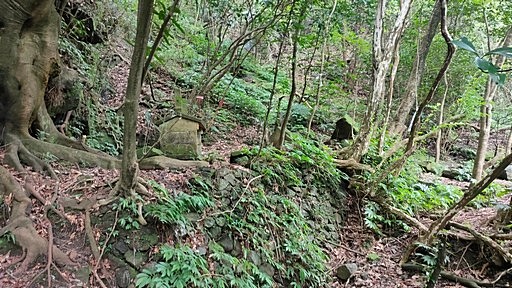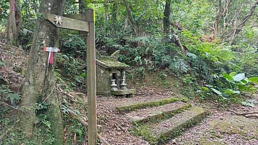 有應媽廟,位於步道左上方。旁邊有塊古碑,字跡難辨。H180m |