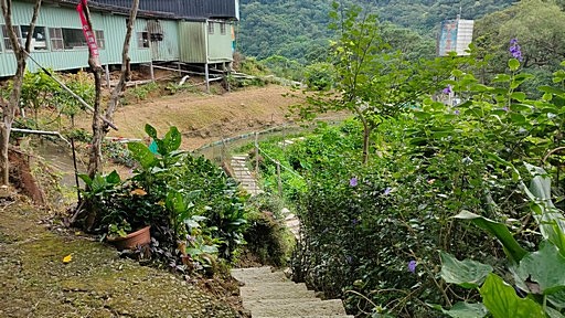 十三層庭園餐廳,店主熱心指引路徑,從餐廳穿越或走右下石階步道皆可。接產道後取左往上。H180m |