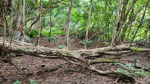 不厭亭,需翻越欄杆,展望佳,遊客頗多,這裡眺望三貂嶺山北稜與102縣道的風景頗為著名。循稜線山路往三貂崙,路況仍佳。H524m |