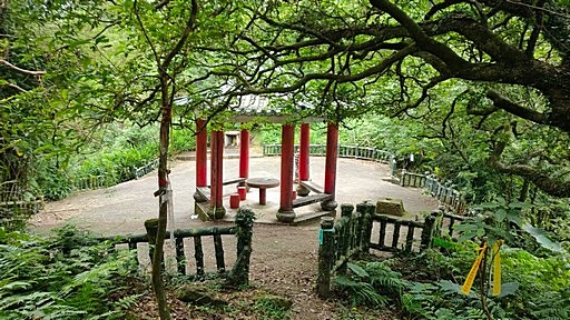 金瓜石福德祠,接上草山公路,左往牡丹山保線路,直下為百二崁古道往金瓜石地質公園。休息。H555m |