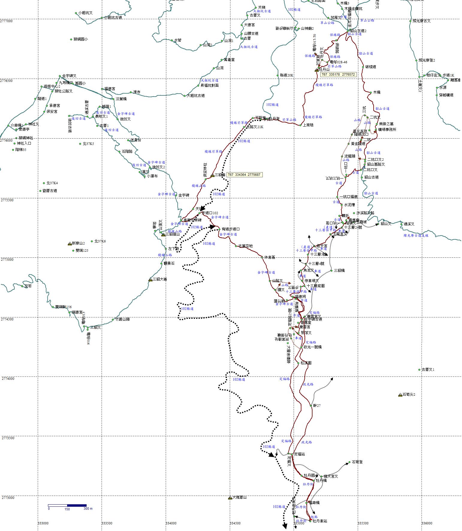 玉龍宮叉路,續前行,經十三層7號腰繞水泥小產道。H174m |