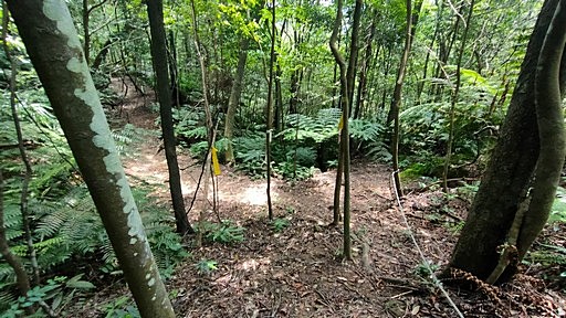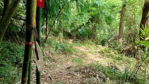 回到北港山叉路,取右下往北港山,一路陡下,但路況佳。中途本有舊路下往汐萬路,但已荒廢。 |