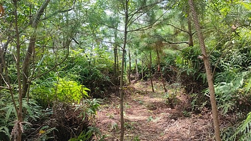 鞍部,出現寬平好走的造林路,多松樹。H237m |