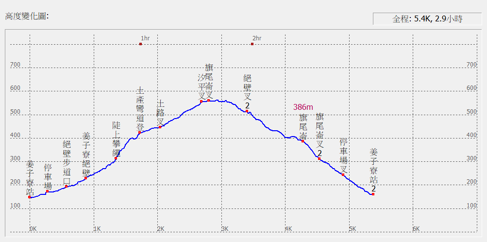 姜子寮站,位於姜子寮路福興宮旁,巴士只有去程才會繞進來。出發,走右邊車道往姜子寮絕壁。H146m |