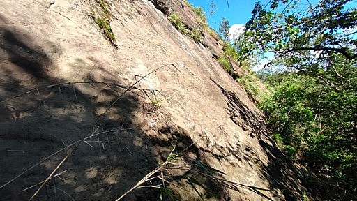 三抱竹鞍,續行應該有兩條山路,上線經大岩壁,下線為腰繞路,沒有特別留意,跟著路條走了上線,路況還好,有點崎嶇。稍後開始出現大岩壁,綿延不絕。H477m |