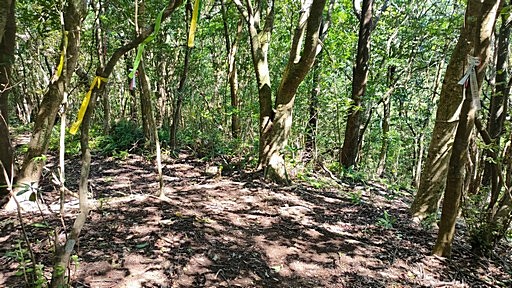 下稜鞍部,左下山路往白石後仙洞約10分,路況仍佳。稍後轉腰繞,路跡較不明顯,路條稀少,小心辦認。H485m |