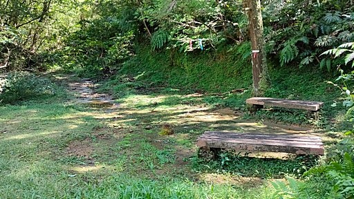 三抱竹鞍叉路,接上東勢格越嶺步道左往平溪國中,右往咸豐嶺、東勢格產道,路口小草地設有木椅,休息。H398m |
