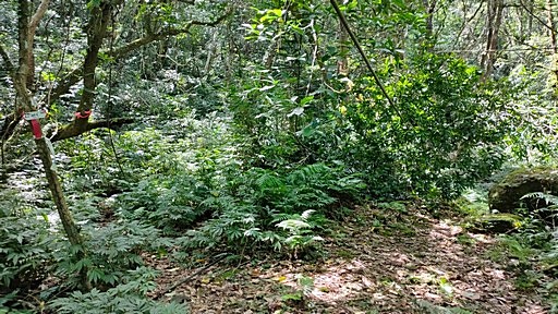 豎旗山登山口,烏山幹23支48電信桿,左上山路循稜往豎旗山約100~120分,續行轉為土產道。H553m |