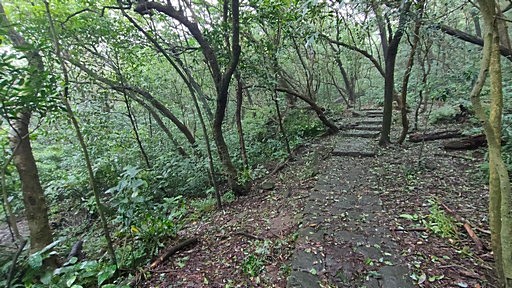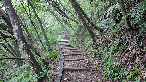 水管路叉路,接上環七星山步道,左往冷水坑,直行往菁山自然中心,續前行,轉為石階步道。H658m |