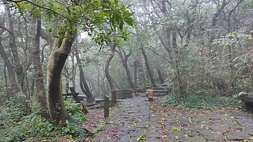 環七星山步道入口,回往冷水坑1.6km,稍整裝後循車道旁的石階步道往菁山自然中心。H652m |