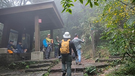 冷水坑叉路,接上七星山苗圃步道,左下往苗圃登山口,右上往七星山主峰、七星公園,休息整隊。H810m |