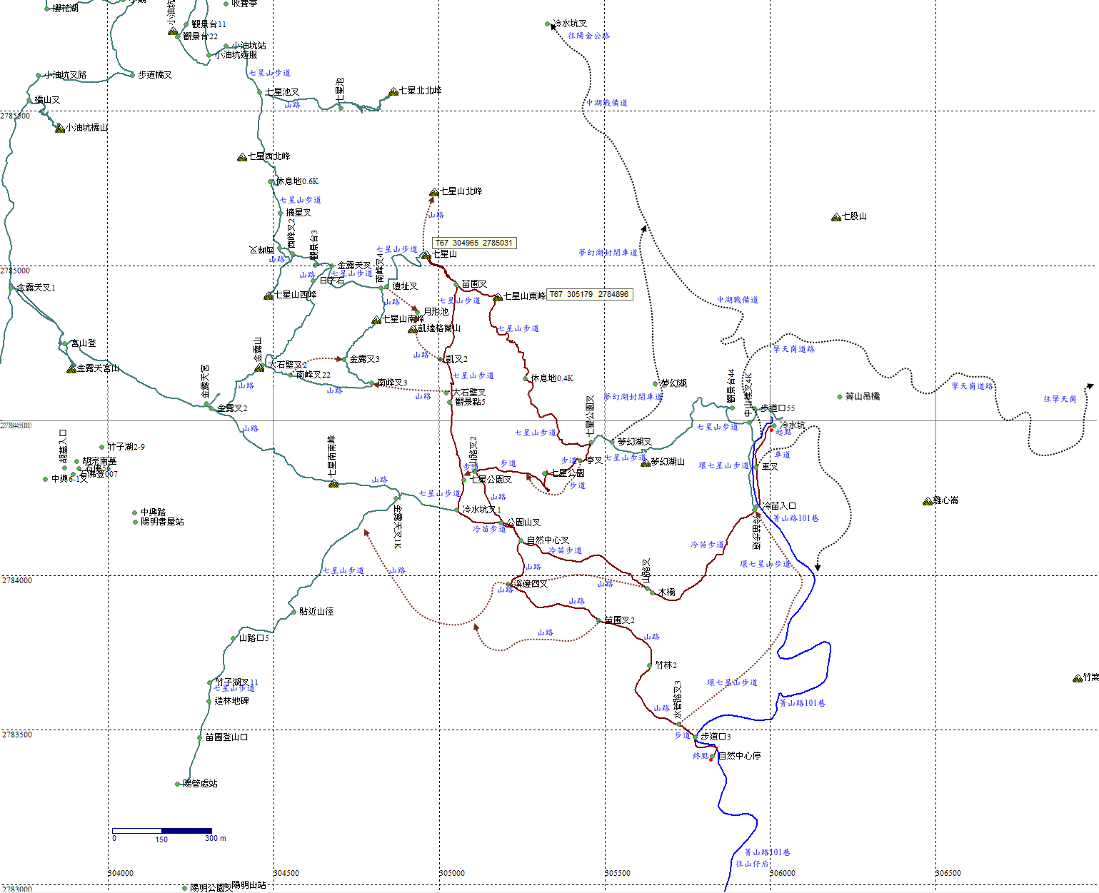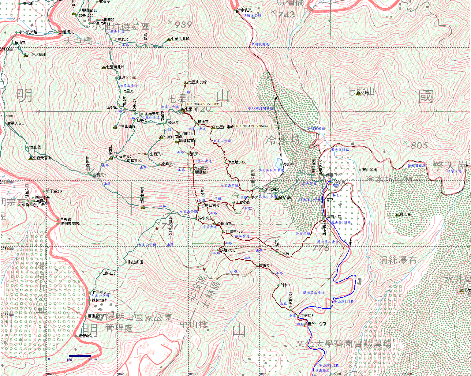 七星公園叉路,直行往冷水坑、夢幻湖,右往七星公園,取右。H884m |