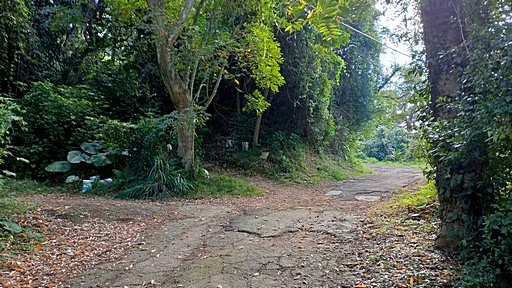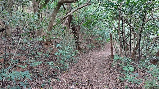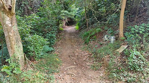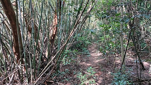 回到三段崎古道入口,山路出口與古道入口相距約十公尺而已。循產道下往月桃窩古道。H159m |
