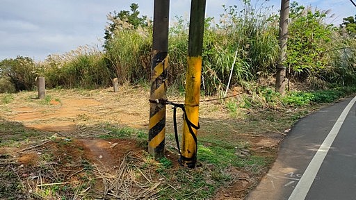 第二個福人步道登山口,鐵鍊封鎖的土產道,照門高幹244電線桿,續行產道登頂北坑山再回。H365m |