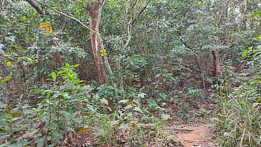 綠1叉路,左為綠線步道,右上往甲線、黑線步道,取右,去程打算走黑線。除了有號碼牌的叉路之外,還有很多叉路,其中多為殊途同歸。H240m |