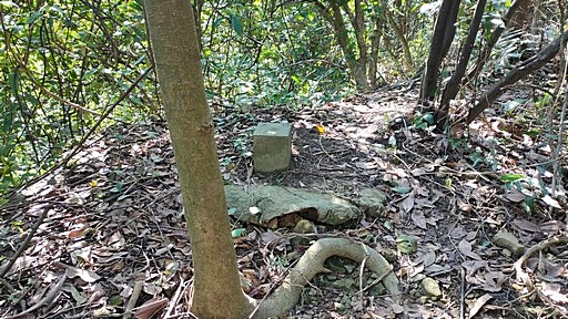 神主嶺,147m,七二○號基石。樹林間無展望。左為稜線山路、或廢產道往北八斗山,直行為神主嶺古道往國聖埔,右側北八斗山稜線路往野柳的段落已荒廢。H146m |
