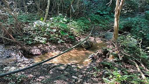 過小溪,過後有水管路,往上走略高的山路才對,水管路雜草叢生。H202m |
