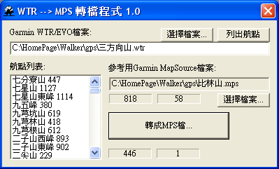 中文航點轉檔程式 1.02 (GTM-->WTR)